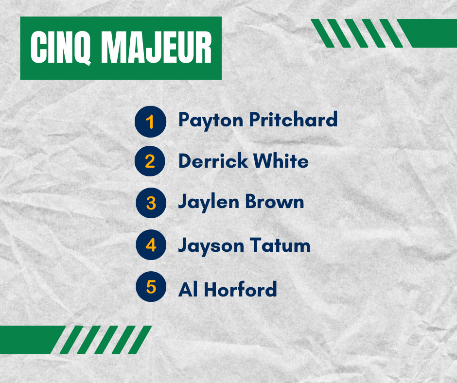 On retrouve une colonne vertébrale de la saison dernière : Pritchard, White, Brown et bien sur le franchise player reste Jayson Tatum. Il Il y a aussi eu des départs comme Luke Kornet ou Jrue Holiday. Reste à savoir si l’ailier fort des Celtics sera de retour sur les terrains après sa grosse blessure intervenue lors des playoffs. Avec la lourde charge de matchs du calendrier NBA, les organismes sont mis à rude épreuve.