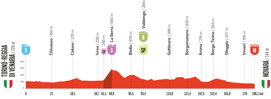 ➡️ Etape 1 – samedi 23 aout : Torino – Reggia di Venaria > Novara – 186 km / Vainqueur de l’étape : Jasper Philipsen 🇧🇪