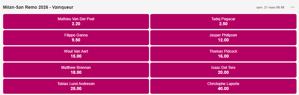 | 🚲Pronostic Milan-San Remo : Van der Poel vainqueur @4.00 ✅ |